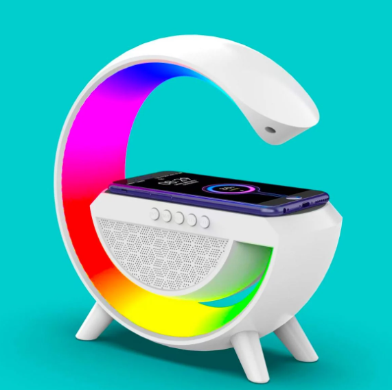 Світильник має вбудований Bluetooth-динамік для бездоганного звучання музики, RGB-підсвічування дозволяє створити затишну атмосферу в кімнаті, а бездротове заряджання робить використання цієї лампи ще зручнішою