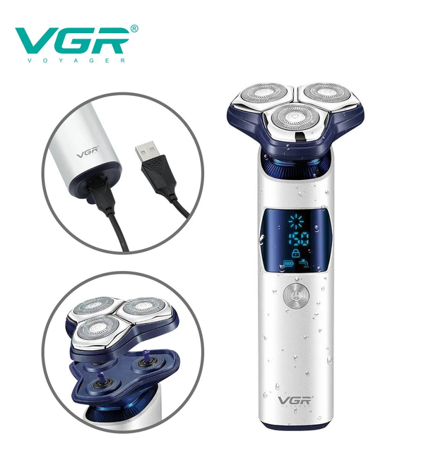 Електробритва VGR-V-328 роторна для вологого і сухого гоління з плаваючими головками. Водонепроникна